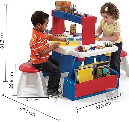 Up to 2 cash back The Creative Projects Table from Step2 is a sturdy desk with lots of storage for creative play activities. These items are shipped from and sold by different sellers. The included pair of stools allows a friend to join in on the fun.
